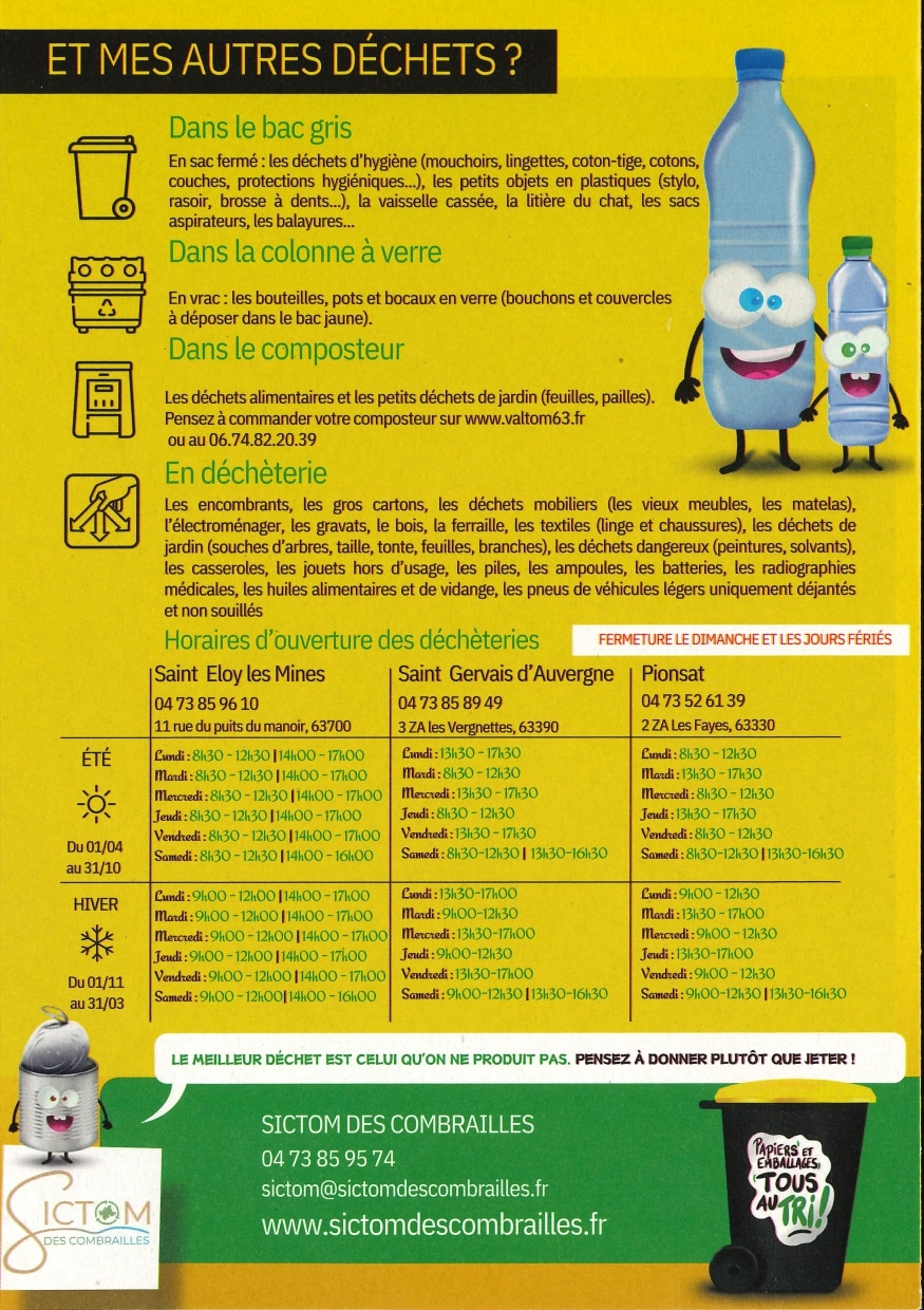 Les mercredis des semaines impaires pour le bourg de St Gervais d’Auvergne (sortir les sacs la veille)